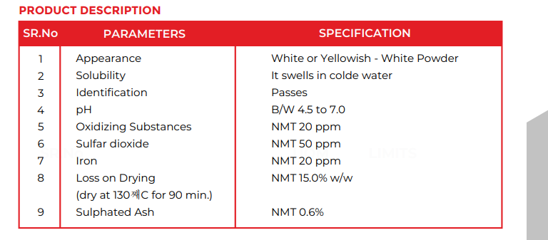 • Solubility: Swells in cold water